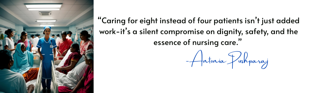 As we contemplate the future of healthcare in India, we must ask ourselves what kind of system we want. One where nurses are forced to provide minimal care to many, or one where they can deliver optimal care to a reasonable number of patients? The answer seems clear, but achieving it will require both moral courage and practical investment.